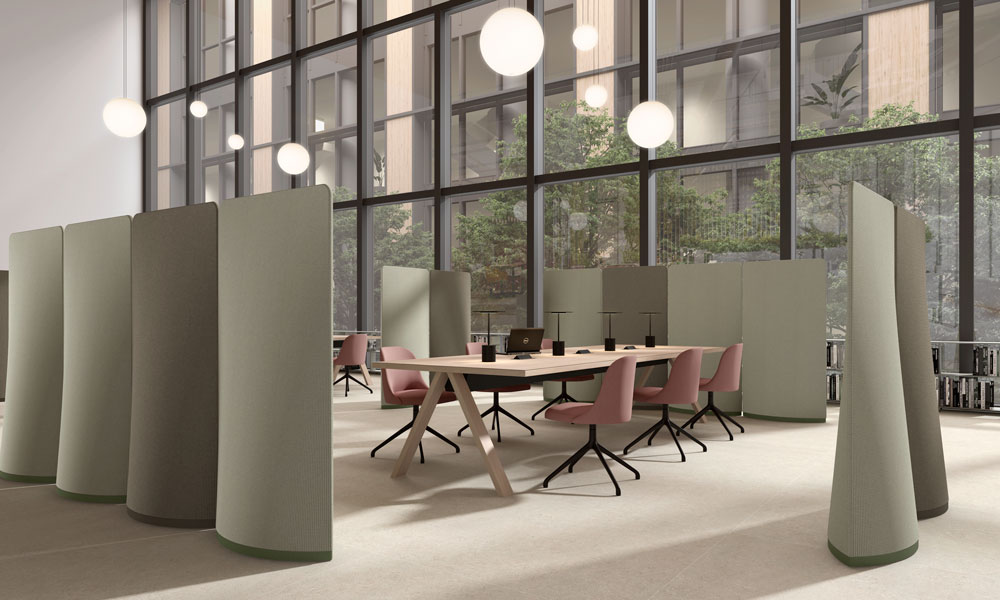 Collezione di divisori autoportanti con proprietà acustiche, ispirati alla navigazione e al Mediterraneo. È composta da tre modelli combinabili tra loro.